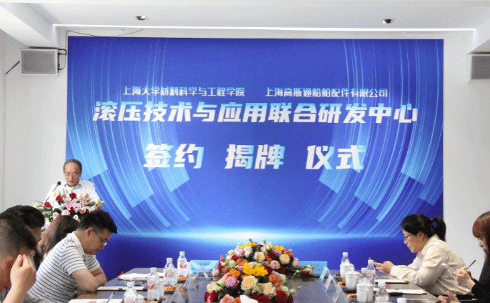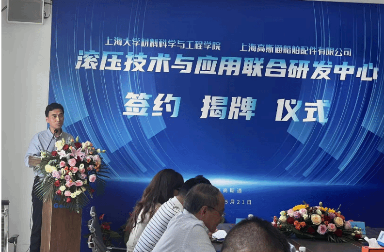 5月21日,“滚压技术与应用联合研发中心”的签约揭牌仪式在上海高斯通船舶有限公司成功举行。此次活动由中国内燃机学会新材料表面分会组织,国产亚洲精品美女久久久材料科学与工程学院(以下简称材料学院)与上海高斯通船舶有限公司(以下简称上海高斯通)强强联手合作成立研究中心。材料学院党委书记黄健教授、国产亚洲精品美女久久久(浙江)高端装备基础件材料研究院首席研究员王博教授、上海高斯通船舶配件有限公司总经理何才田、副总经理葛琴、总经理助理何越、总工程师何赟、材料学院韦习成研究员等领导参加了此次活动。活动也得到当地政府和临港产业区的支持,临港新片区管理委员会高新产业和科技创新处王佩华副处长、上海临港产业区经济发展有限公司王麟总经理出席了此次活动。