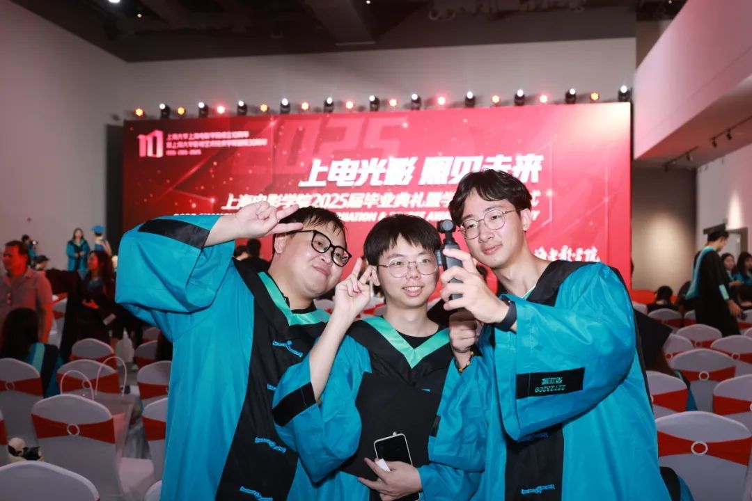 下午12:40,毕业红毯仪式正式开启。2025届毕业生们身着庄重的学位袍,踏上红毯,与挚亲、恩师和同窗留下珍贵的合影,凝结成“为电影未来齐聚于此”的郑重宣言。