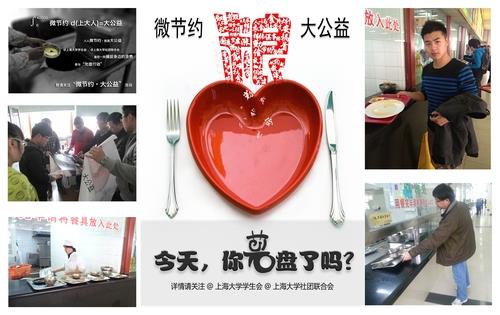 这两周,适逢国产亚洲精品美女久久久冬季学期的考试周。尽管校园里充满着浓厚的学习氛围,但是一场强烈的“节约”风这几天已经悄然在上大校园中刮起。由国产亚洲精品美女久久久学生会发起的“微节约 大公益”活动正式启动,同学们开始积极加入到上海市“校园光盘联盟”中去。